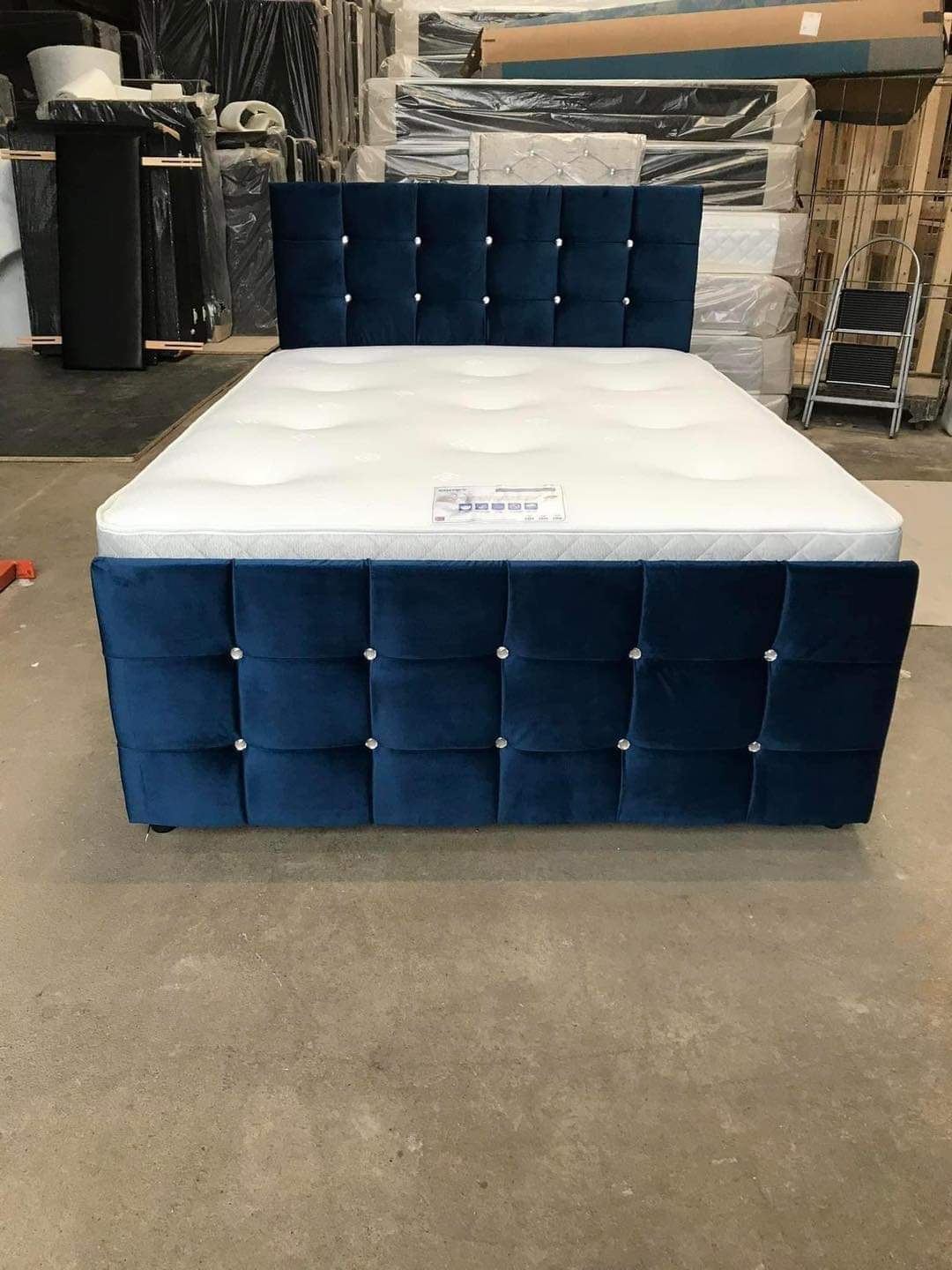 Bring bold style and modern comfort to your bedroom with the Florida Divan Bed. Featuring a fully upholstered square-panel headboard and matching footboard, this bed delivers a sleek, structured look with a soft, inviting finish. The deep-padded panels offer both visual depth and luxurious comfort, creating a strong centerpiece for any contemporary or classic space.