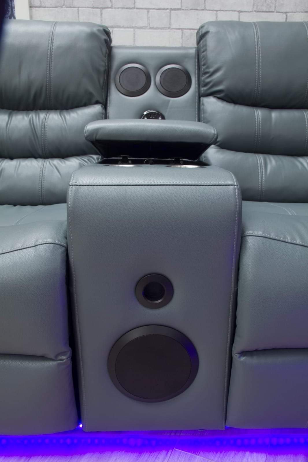 Set the mood with subtle LED lighting that adds an ambient glow — perfect for movie nights or a modern lounge vibe.